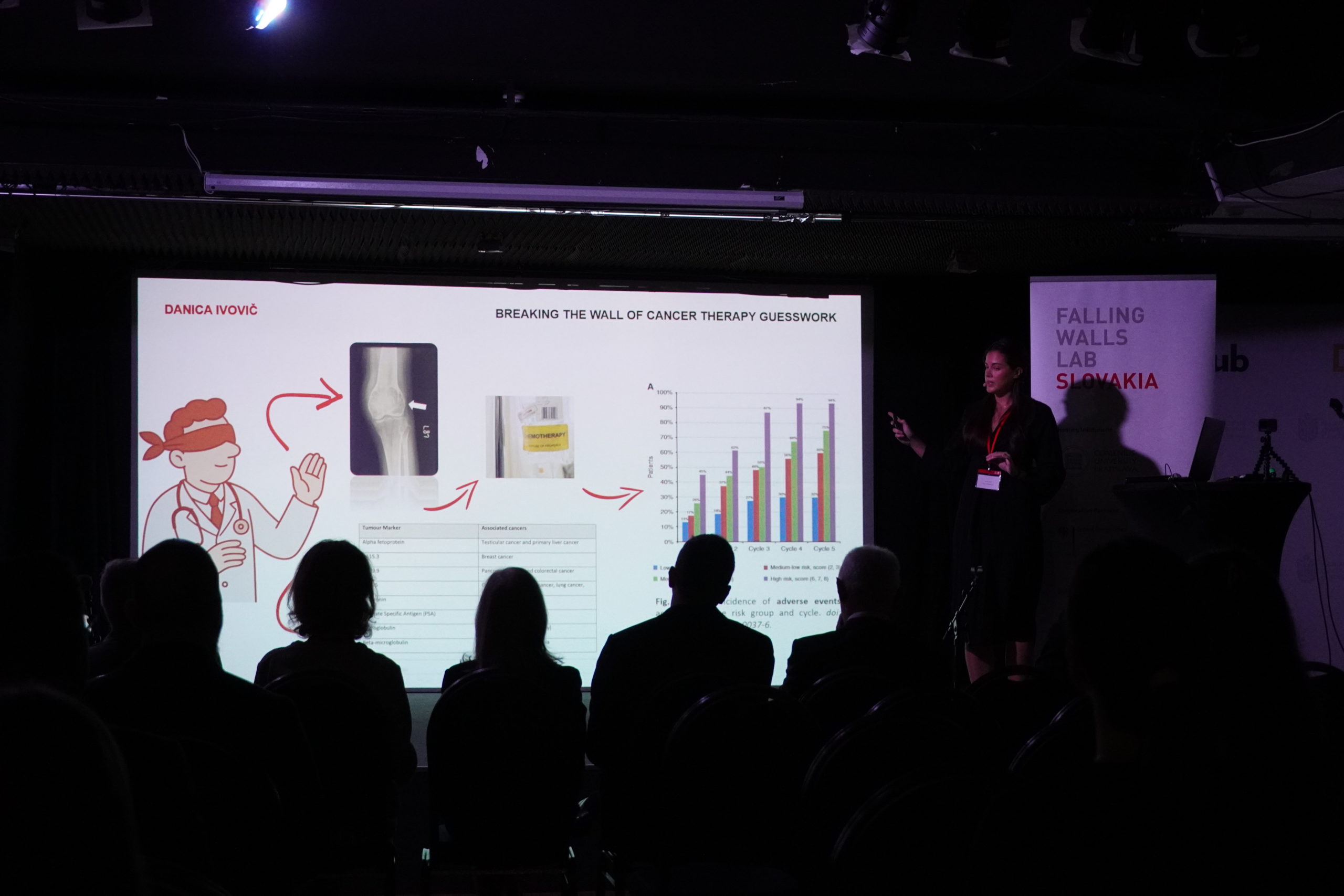 Prvé miesto na prestížnom celoslovenskom fóre pre vedecké talenty Falling Walls Lab Slovakia spolu s miestenkou na svetové finále tejto súťaže v Berlíne získala Dr. Danica Ivovič z Biomedicínskeho centra SAV, v. v. i. (BMC SAV). Na pódiu bratislavského V-klubu na slovenskom finále 25. septembra 2025 prezentovala nový diagnostický nástroj, na ktorom pracuje a ktorý by lekárom mohol pomôcť včas zachytiť, že liečba pacientov s rakovinou semenníkov prestáva fungovať.